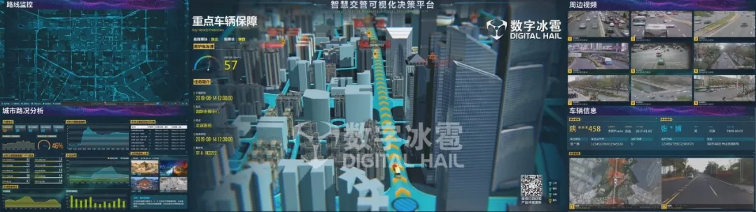 数字冰雹智慧交管“通视”大数据可视化决策平台,面向交管指挥中心大屏环境,支持对交通路况、警力分布、警情事件、接处警情况等要素进行综合监测,提供综合态势监测、应急资源监测、应急预案可视化、车驾管可视分析等主题。并支持点选查看具体警力、交通事件、监控视频等详细信息,帮助管理者实时掌握交通整体运行态势,对辖区路况态势进行科学评估,为交通管理指挥提供科学的决策支持。 更多信息详见链接: