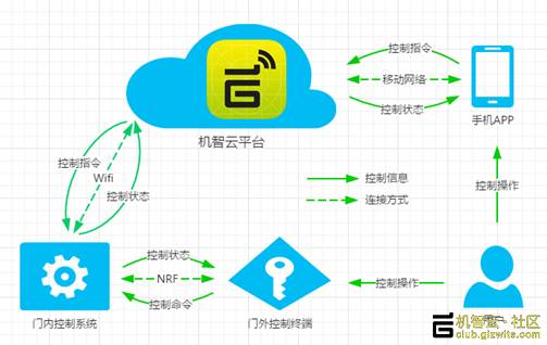 门内控制系统是整个产品的核心的,起着接收门外终端控制指令,接收云端控制指令并执行相关操作,操作完成后还要将数据上传到云端同步的重要功能。 门外终端