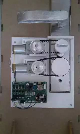 适用环境:适于用我们家庭中普通的防盗门,只要把本产品贴在门上,连上WIFI,即可让普通的门锁变成智能门锁,无需更换锁芯。本产口具有APP开关门,APP反锁,指纹开门,访客密码开门,门状态监控,室外温度测量的功能。本产品具有以下功能: