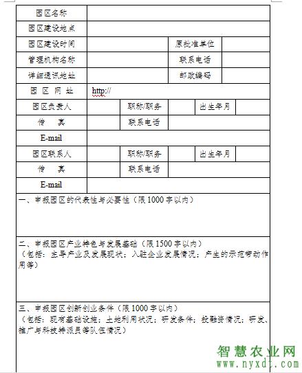 (一)国家农业科技园区建设申报书(见附件1);